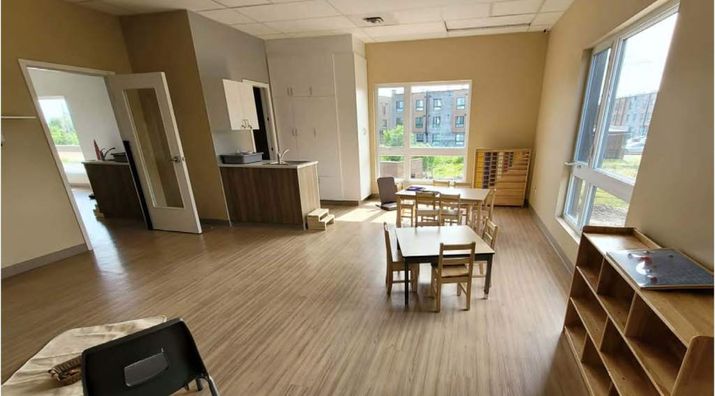 Les établissements de la Garderie Montessori du Connaught sont munis d’espace moderne et spacieux adaptés au besoin des enfants. Chaque établissement comprend 11 classes, un gymnase, une cuisine et une cours extérieure. Les établissements sont situés l’un à côté de l’autre, et accessible par l’entremise d’un corridor communiquant.